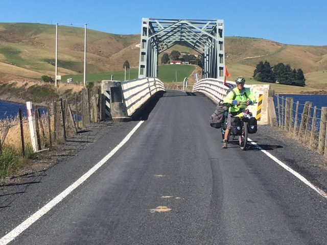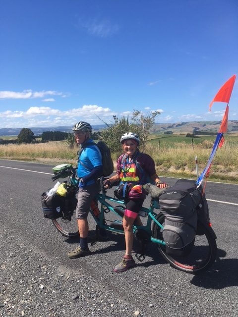 We’re a pair of 77 year olds. I own an online image subscription business which I am able to keep operating as we tour. My partner Meri, an ex US psychologist, is a serious gym/Pilates/yoga fan. Although we’re not large the bike weighs near on 200kg when fully loaded. We are not out to be martyrs so carry an often-used spare battery, a bottle of red and a white in the drink bottle holders (we use Camelbak packs for hydration), two MacBooks and wet weather gear for whatever we come across meteorologically speaking. The bike is equipped with plenty of lights, flags and ribbons. We don’t camp but make use of motels, B&Bs, rural cottages, Airbnb and baches and are self-sufficient for meals. We ride from café to café if at all possible and routinely average 25kph per hour over four to five hours of daily riding.