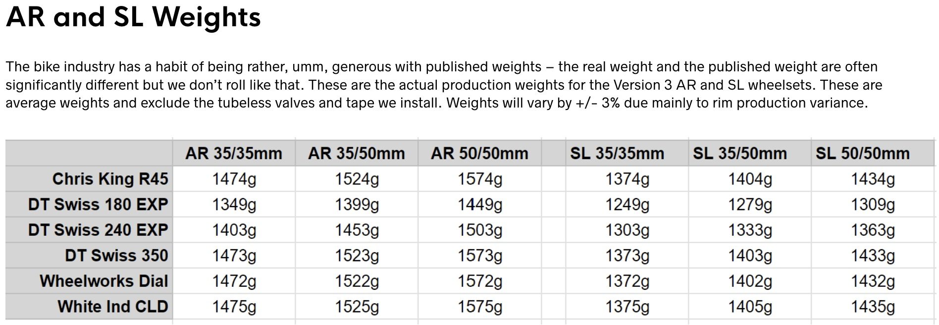 The SuperLight and AR rims share the same specs, but the SL uses a different type of carbon fiber and a more labor-intensive layup. The result is the lightest possible rim which doesn’t give up performance or our legendary durability. Which should you choose? It’s a simple cost-vs-weight tradeoff. Note that the SL rim is not recommended for riders over 80kg.