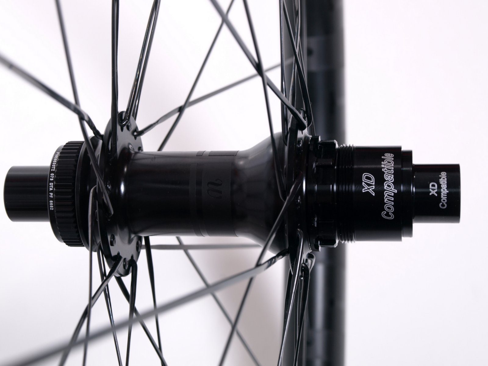 Front Hub, DT Swiss 350s, 32 hole, Black, 110×15 thru-axle, Center Lock Rear Hub, DT Swiss 350s, 32 hole, Black, 148×12 thru-axle, Center Lock, Sram XD Spoke, DT Swiss Aerolite, Black