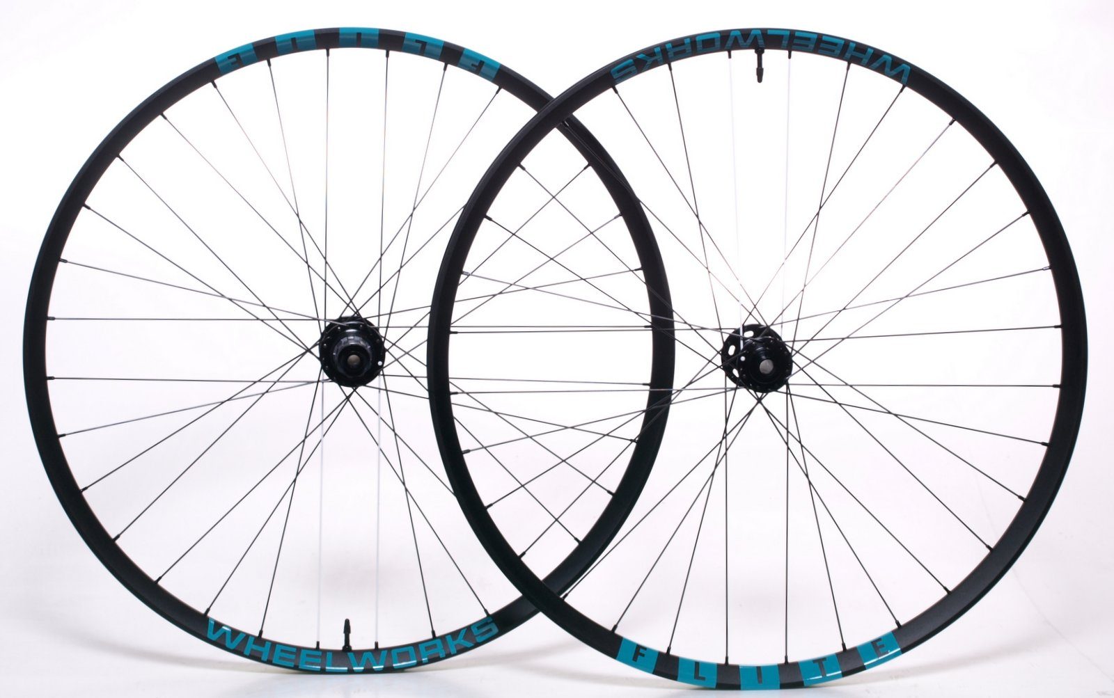 Front Hub, Wheelworks Dial, 110×15 thru-axle, 32 hole, Black, Center Lock, Rear Hub, Wheelworks Dial, 148×12 thru-axle, 32 hole, Black, Center Lock, 11 speed Shimano road 72 engagement point