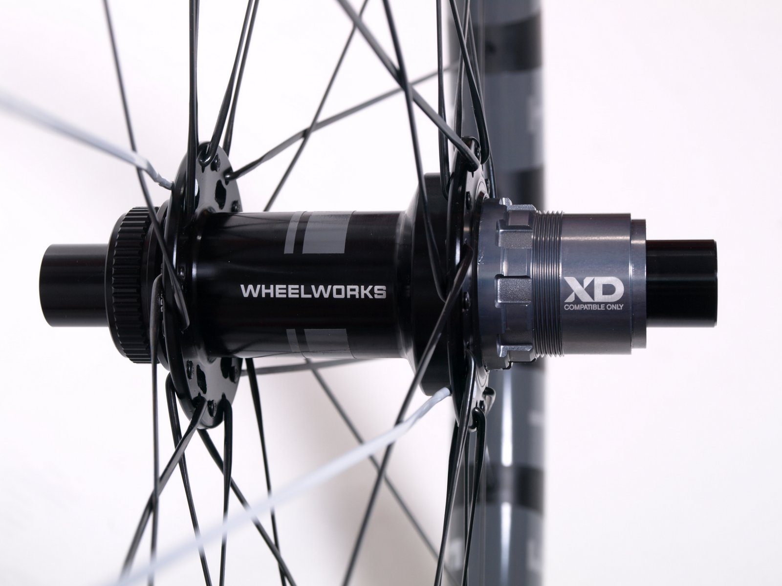 Front Hub, Wheelworks Dial, 110×15 thru-axle, 32 hole, Black, Center Lock, Rear Hub, Wheelworks Dial, 148×12 thru-axle, 32 hole, Black, Center Lock, Sram XD 72 engagement point
