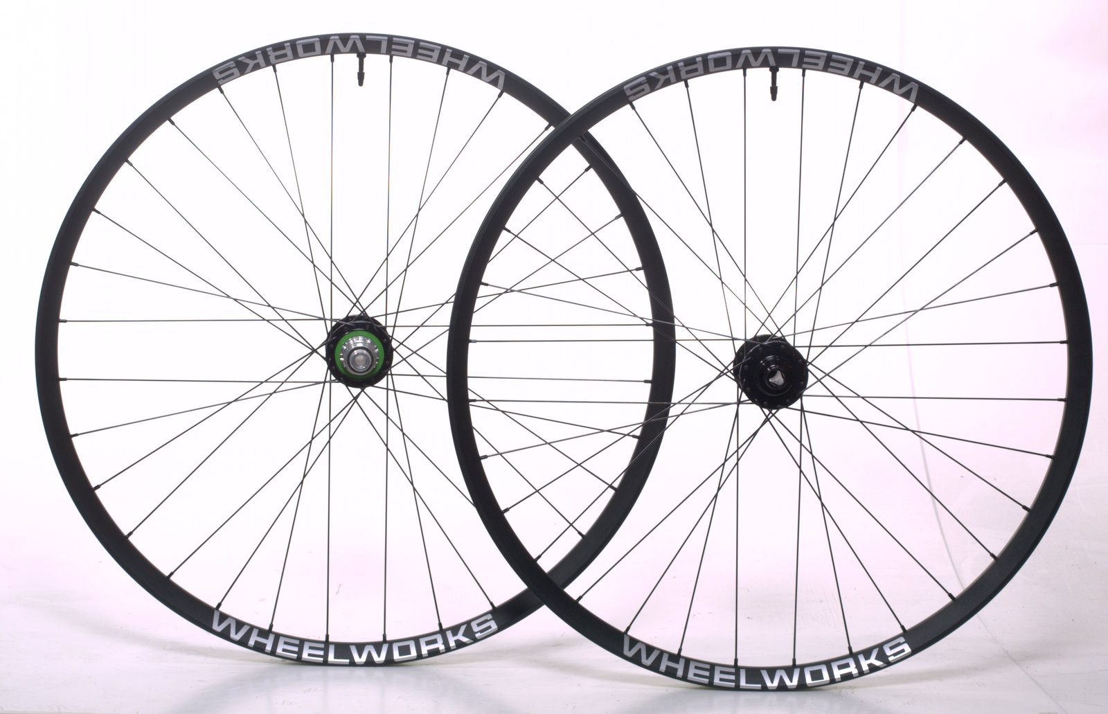 Front Hub, Hope Pro4, 32 hole, Black, 110×15 thru-axle, 6-bolt Rear Hub, Hope Pro4, 32 hole, Black, 148×12 thru-axle, 6-bolt, Sram XD Spoke, DT Swiss Competition, Black