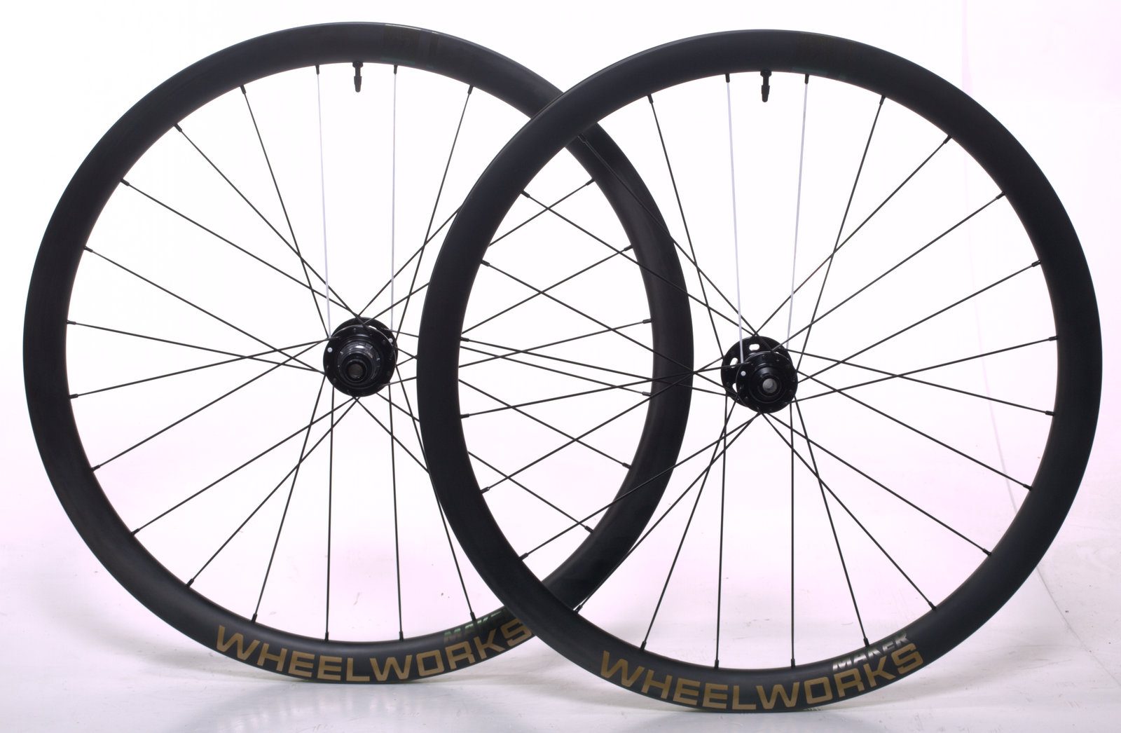 Front Hub, Wheelworks, Dial, 24 hole, Black, 100×12 thru-axle, Center Lock Rear Hub, Wheelworks, Dial, 24 hole, Black, 142×12 thru-axle, Center Lock, 11 speed Shimano road