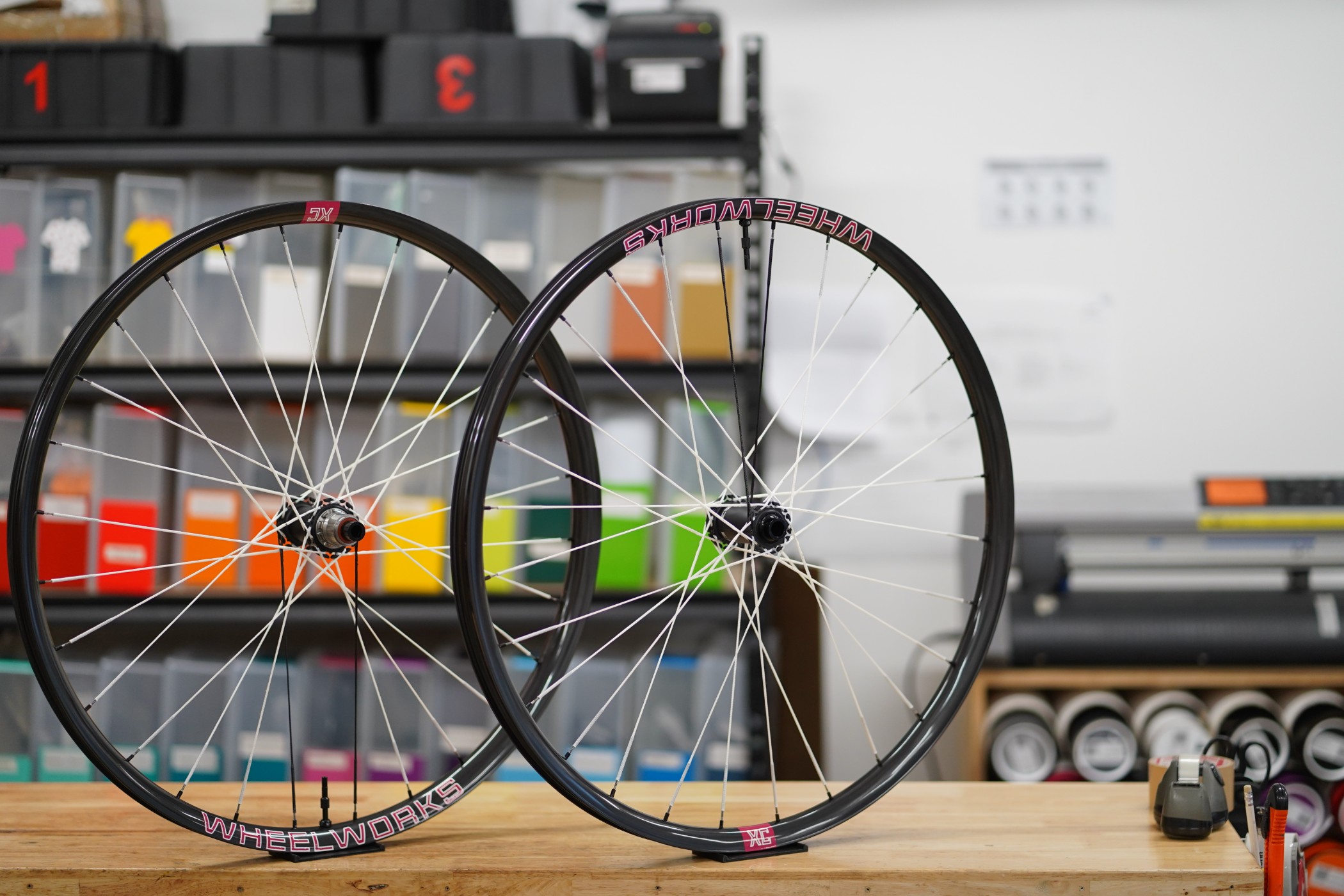 We cut XC Lite decals from ultralight, high‑quality vinyl which is only 80 microns thick in a wide range of colours. Because each wheelset is built to order, we can match or contrast your frame, fork, or existing Wheelworks wheels.