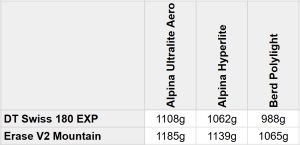 - Alpina UltraLite Aero (4.67g each)
